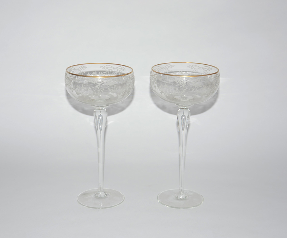 Due grandi calici decorati a rose con bordi dorati (h cm 30)