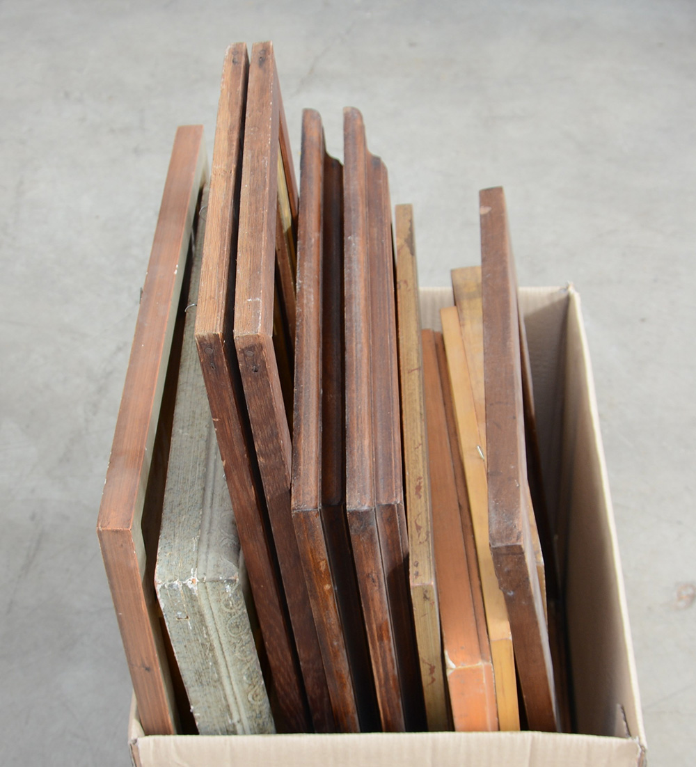 Cartone contenente numerose cornici di fatture e dimensioni differenti (difetti)