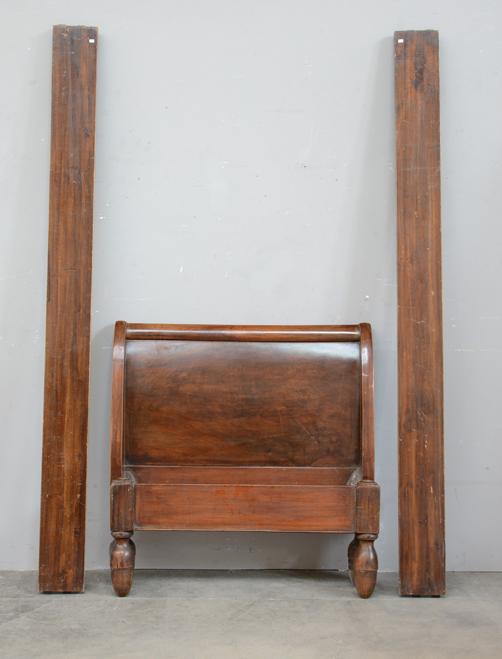 Letto singolo con testata ricurva e piedi torniti, completo di sponde, sec. XIX (difetti)