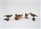 Lotto composto da quattro sculture raffiguranti volatili in legno decorato in policromia