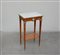 Tavolino da appoggio a due ripiani con ghiere in metallo dorato e fascia decorata con cammeo in porcellana (cm 44x75x30)