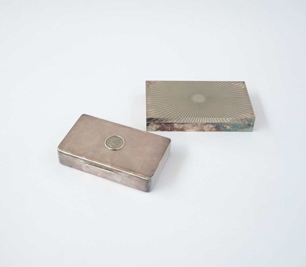 Lotto di due scatole di forma rettangolare di cui una in argento e l'altra in metallo (gr 340 ca.) (difetti)