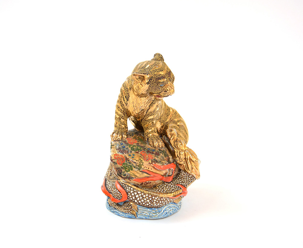 Lot 3125 | Scultura in porcellana Satzuma raffigurante tigre e drago su una roccia...