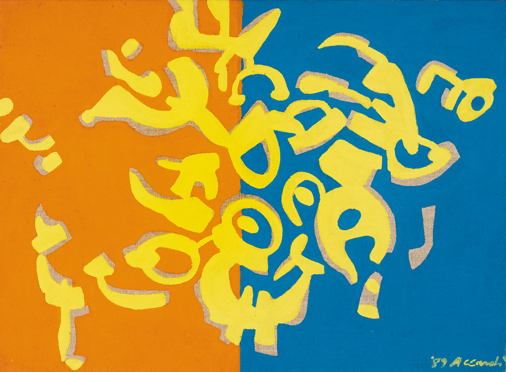 CARLA ACCARDI Trapani 09/10/1924 - Senza titolo, 1989, vinilici su tela cm. 40x55, firma e anno in basso a destra, firma, anno e archivio numero 115 A al retro, pubblicato su "Carla Accardi" a cura di Germano Celant, Charta Edizioni, pagina 431 repertorio 1989 21.