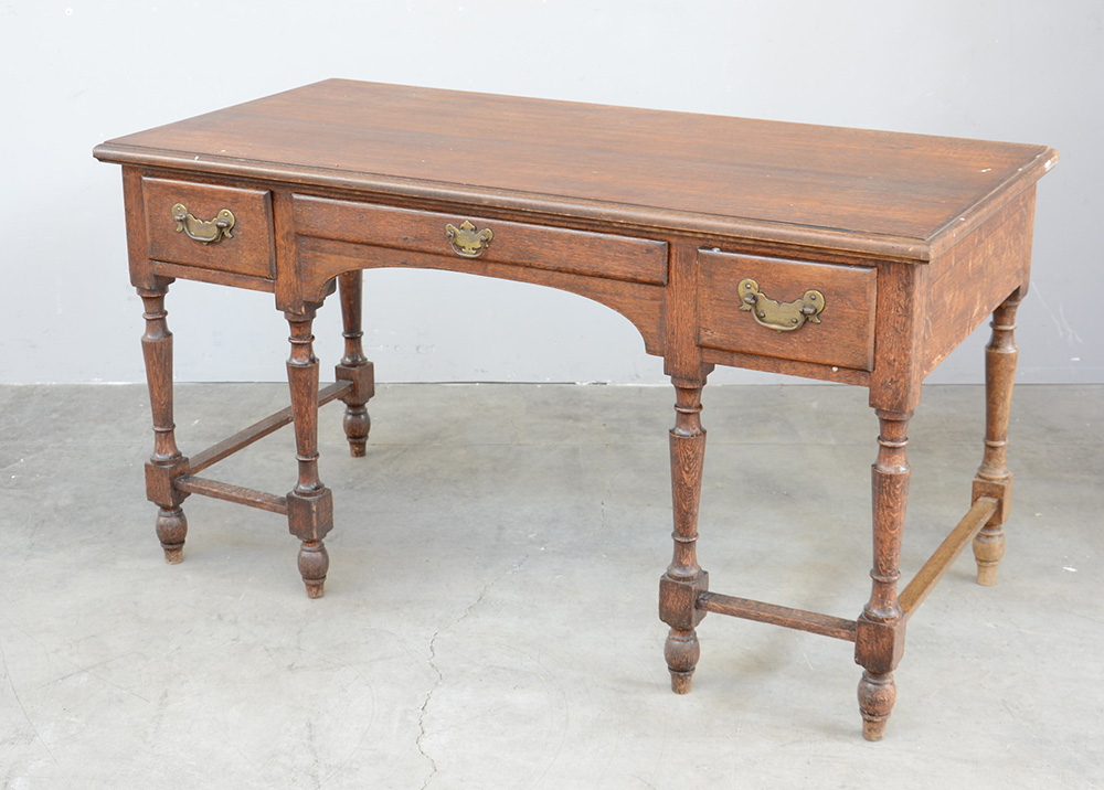 Lot 3162 | Tavolo scrittoio in rovere a tre cassetti sottopiano con gambe tornite...
