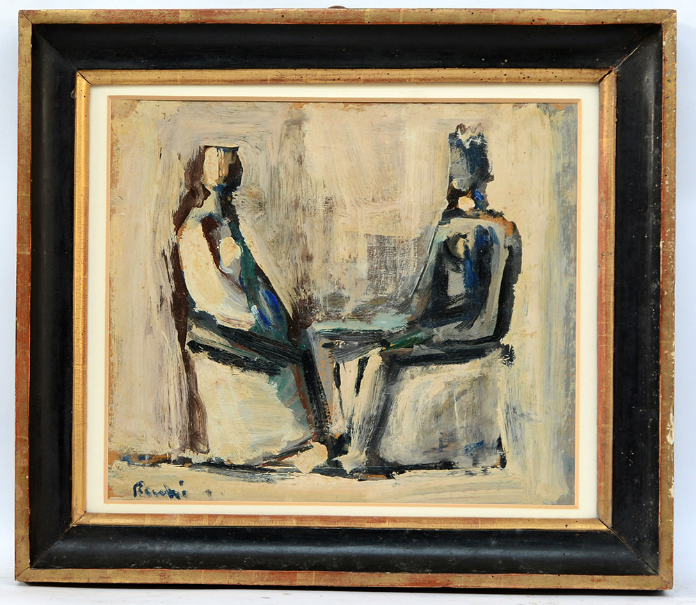 Lot 3166 | Ugo Recchi "Il re e la regina" olio su compensato (cm 35x40) Firmato in basso...