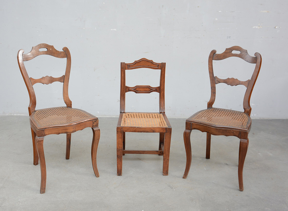 Lot 3167 | Lotto composto da una coppia di sedie del sec. XIX unita ad una da balia
