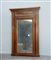 Caminiera in noce di forma architettonica con profili in ottone e fascia superiore decorata a medaglioni e vaso fiorito in metallo dorato (cm 110x165) (difetti)
