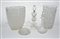 Lotto composto da due vasi e un posacenere in vetro molato, una bottiglia per liquore e una lampada da tavolo con corpo in vetro sfaccettato (h max cm 29,5) (difetti)