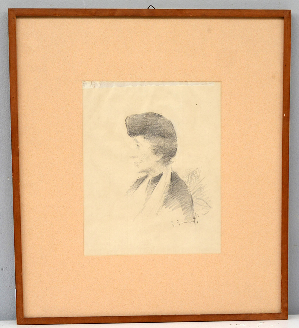 Ernesto Quarti Marchio (Bergamo 1907 - 1982) "Ritratto di donna" matita su...