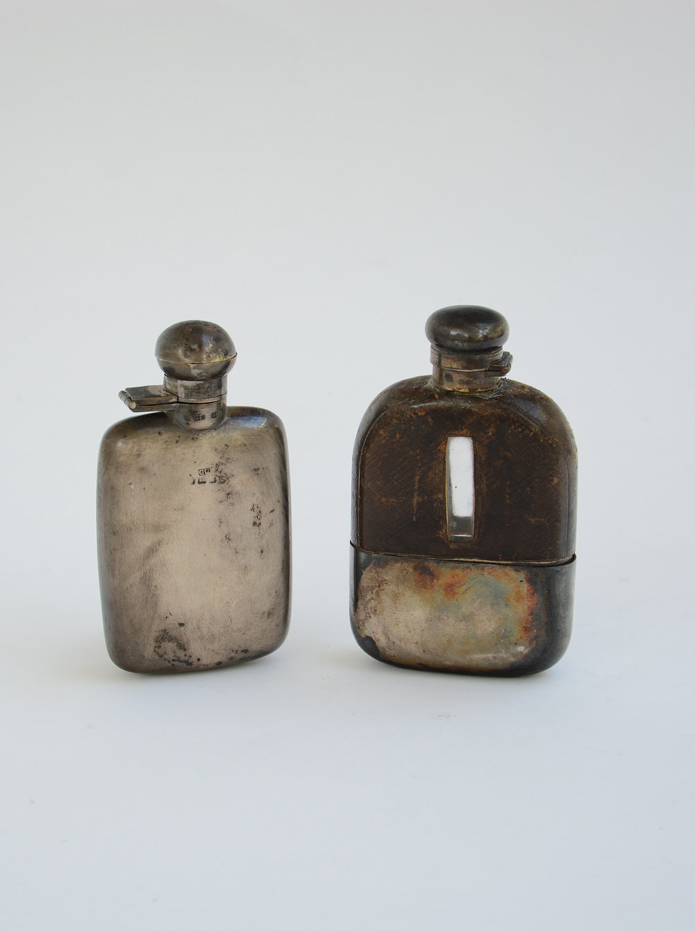 Lotto composto da due fiasche in argento e vetro di cui una Inghilterra, sec. XIX-XX (max cm 13) (difetti)
