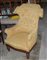 Poltrona con schienale e braccioli sagomati, fascia anteriore filettata in legno chiaro, gambe tornite. Sec. XIX