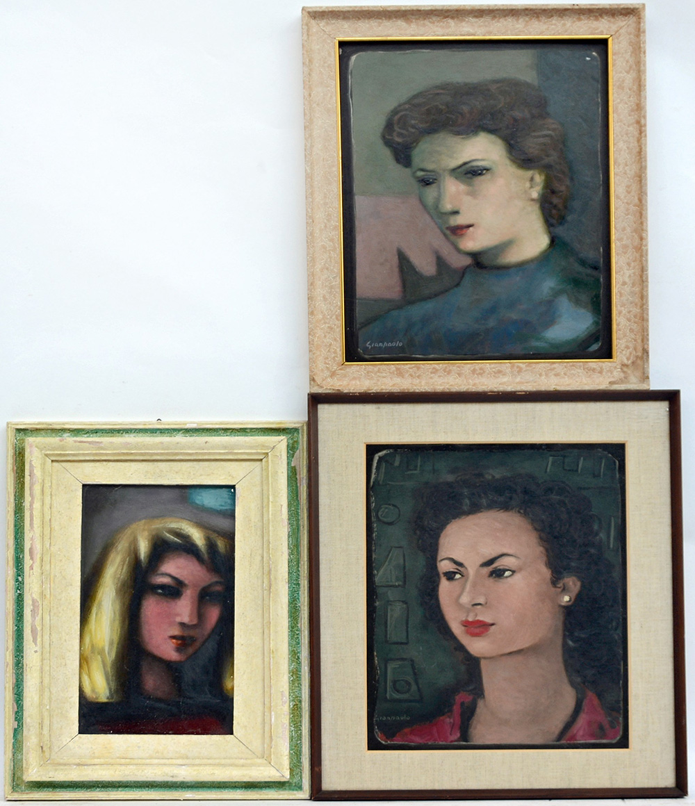 "Ritratti femminili" lotto di tre dipinti ad olio, misure diverse, firmati "Giampaolo", in cornici (difetti)
