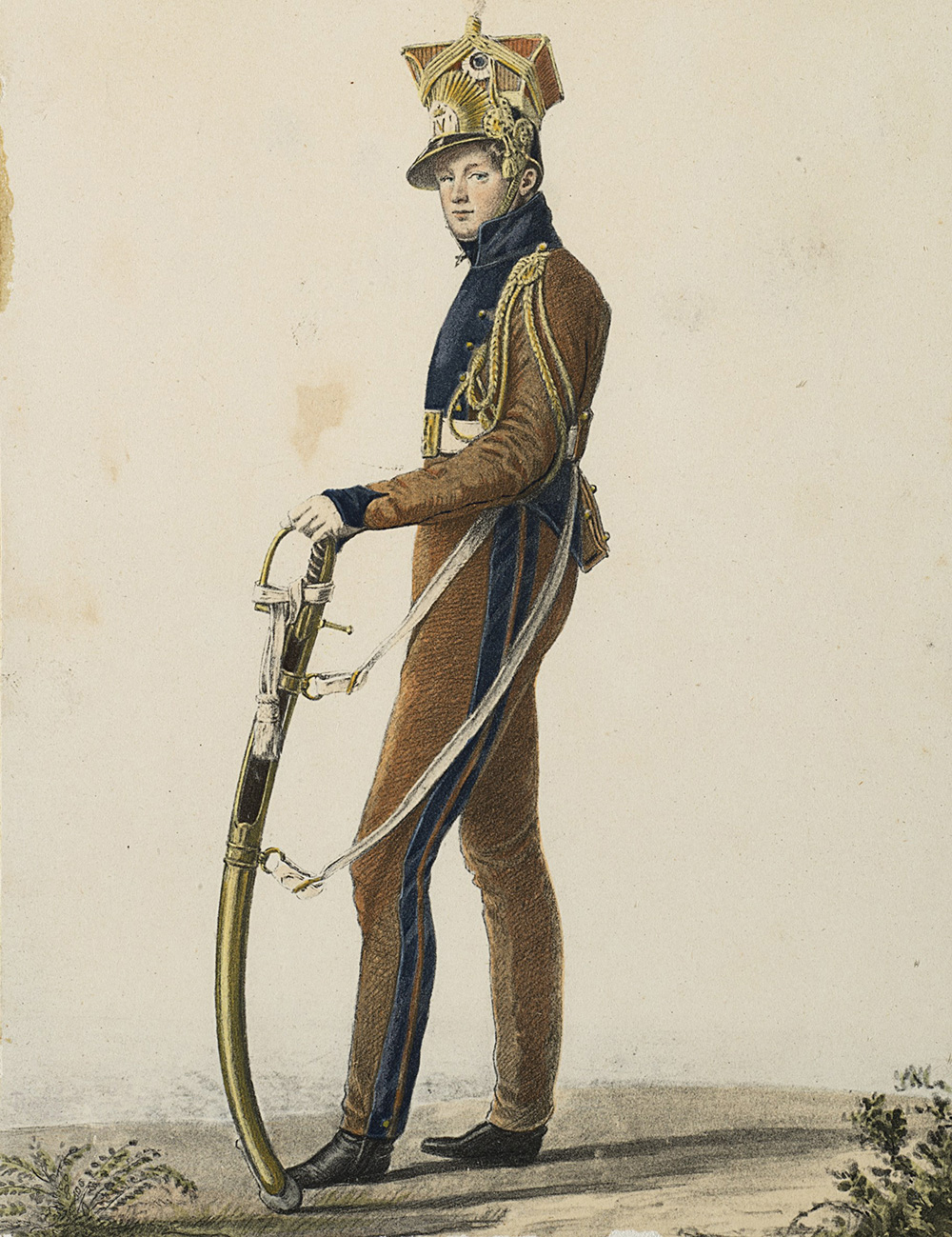Incisione raffigurante Ufficiale del Primo Reggimento dei Lancieri della...