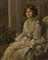 F. Vernoz "Ritratto di fanciulla seduta con bambola" olio su tela (cm 24x19)...