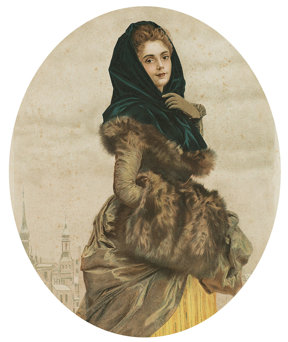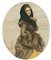 Incisione a colori del sec. XIX raffigurante un ritratto di donna con città...