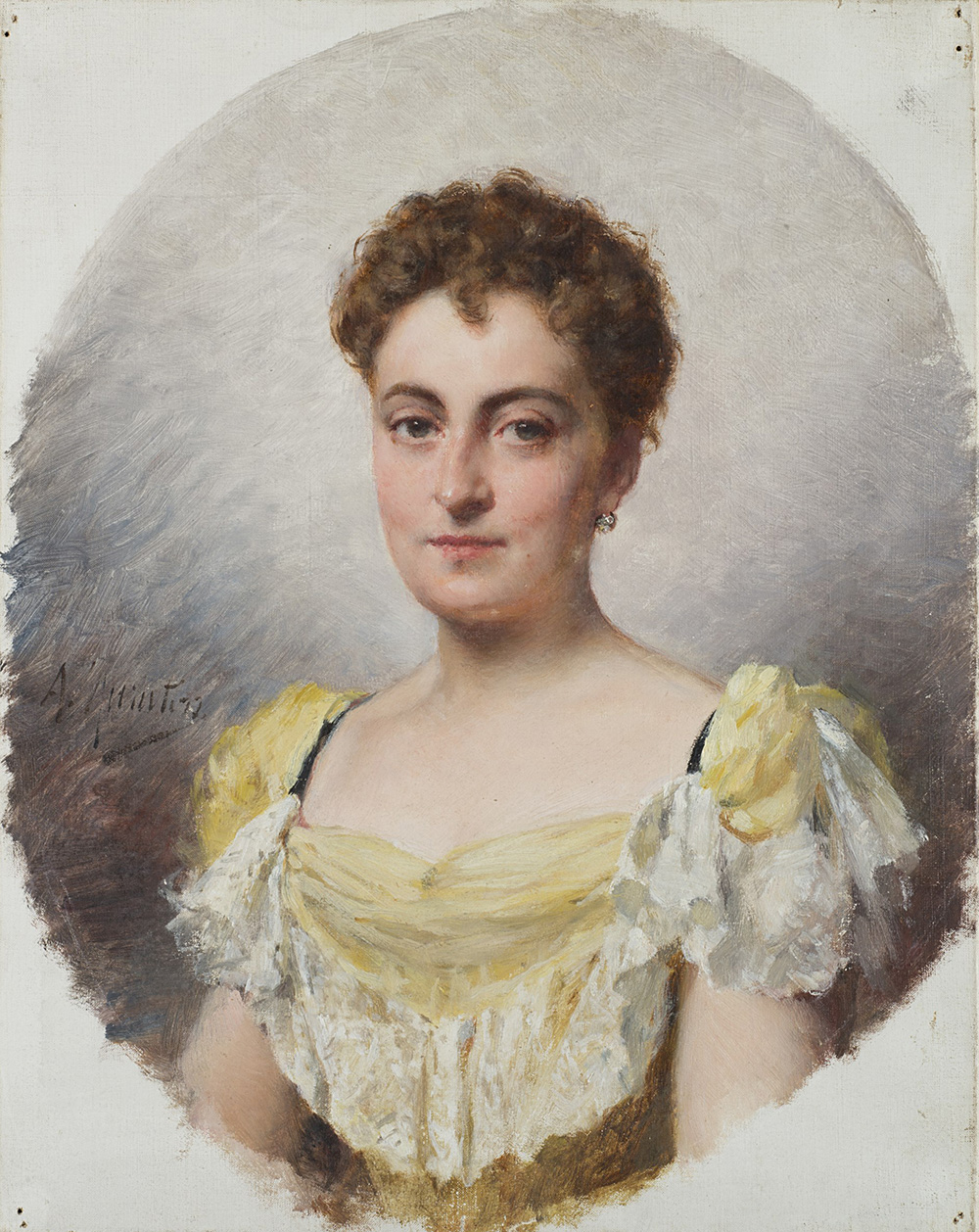 Firma indecifrata, fine sec. XIX "Ritratto di gentildonna in giallo" olio su...