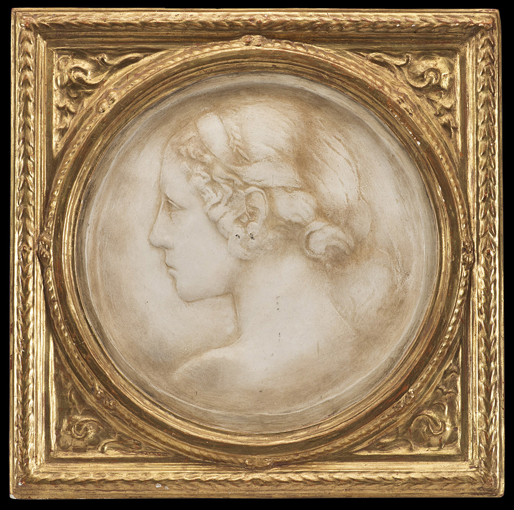 Placca in terracotta decorata in doratura in rilievo a volto femminile (cm...