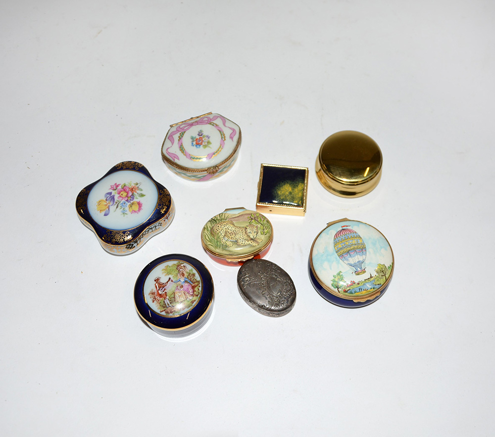 Lotto di otto scatoline di fatture differenti in porcellana e metallo...
