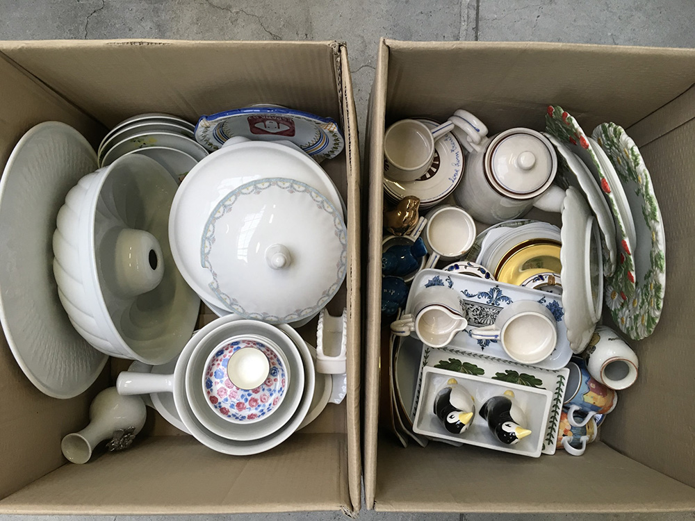 Lotto di due cartoni contenenti numerosi oggetti per la tavola (difetti)