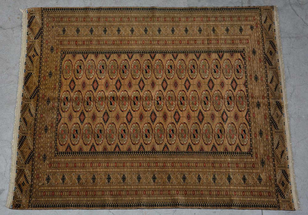 [Tappeti] Tappeto Bhoukara Kerky, Turkestan occidentale, sec. XX. Disegno a Gul su fondo crema (cm 174x144)(difetti)