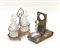 Lotto di due cruet-stand in metallo argentato completi di ampolle (lievi difetti)
