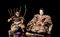 Manifattura giapponese "Samurai" Due statuette in legno e ceramica policroma...
