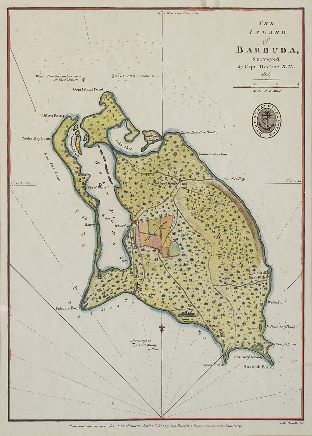 Litografia a colori raffigurante L'isola Barbuda (cm 30x20) In cornice -EN A coloured lithography. Framed