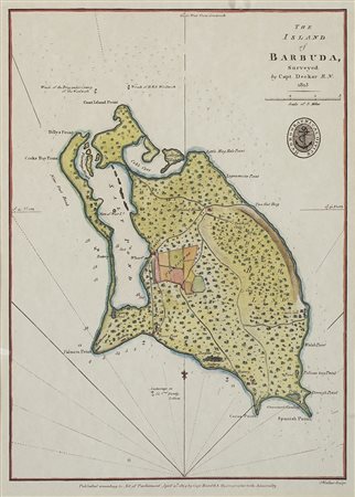 Litografia a colori raffigurante L'isola Barbuda (cm 30x20) In cornice -EN A...