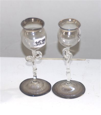 Manifattura di Murano. Coppia di porta candele in vetro incolore soffiato e...