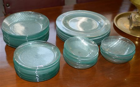 Parte di servizio di piatti da dodici in vetro costolato, etichetta...