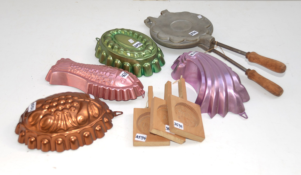 Lotto composto da otto stampi da cucina di epoche e materiali diversi