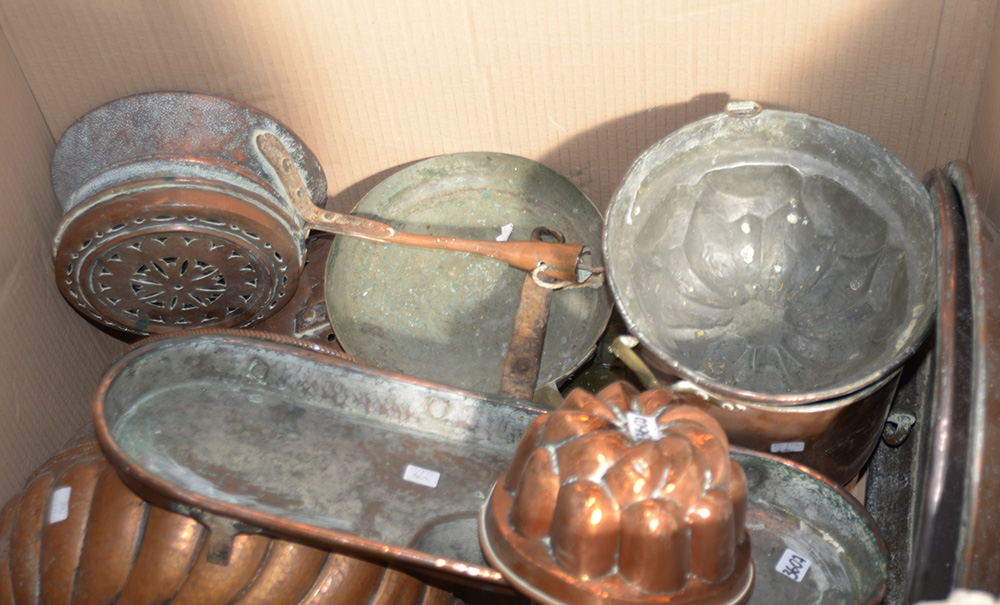 Lot 3607 | Cartone contenente numerosi oggetti in rame di diverso uso (difetti)