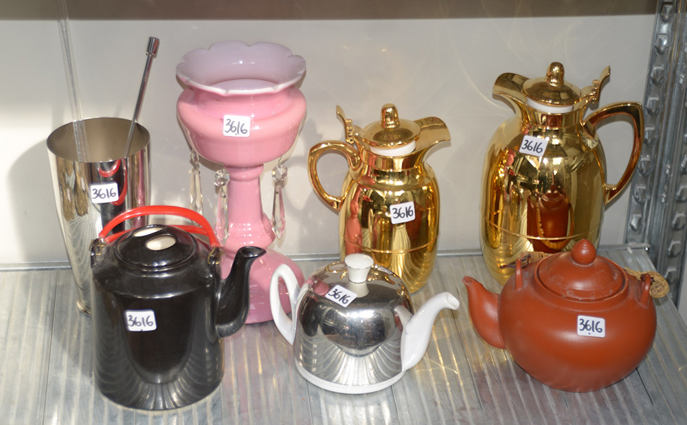 Lot 3616 | Lotto composto da tre teiere, un candeliere in opaline, due thermos dorati,...
