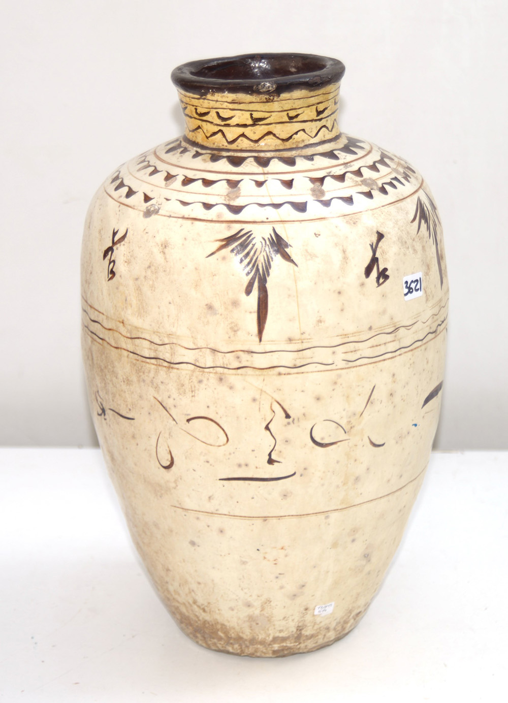 Vaso in terracotta decorato su fondo bianco a motivi stilizzati (h. cm 45) Cina, sec. XX (difetti e restauri)