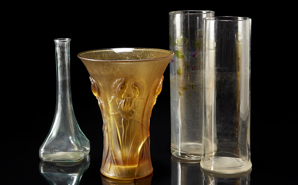 Lot 3622 | Lotto composto da quattro vasi in vetro di manifatture diverse (difetti) -EN...