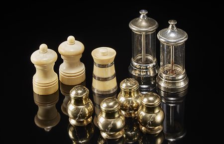 Lotto composto da nove saliere e pepiere di diversa fattura ed epoca -EN Lot comprising nine different salt and pepper casters