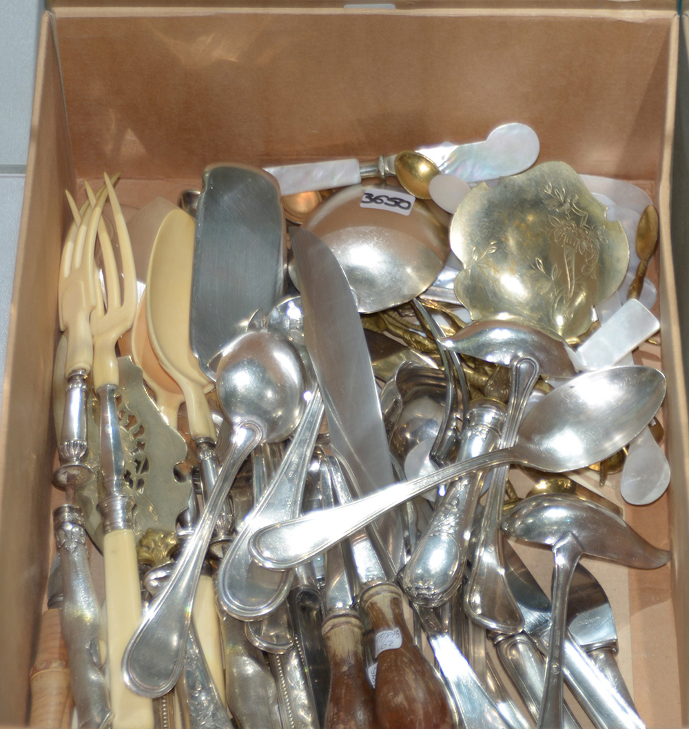 Lotto composto da numerose posate di diversa fattura in argento, metallo argentato e materiali diversi -EN A group of cutlery in various materials