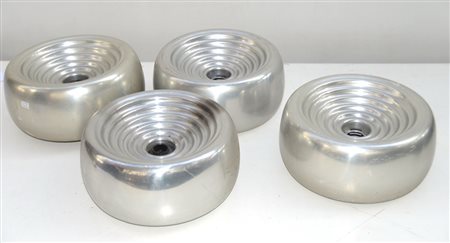 Achille e Piergiacomo Castiglioni Gruppo di diciassette lampade da parete o da plafone modello "Padina". Produzione Flos, Milano 1966. Alluminio stampato e metallo verniciato nero (d cm 25) (difetti e mancanze)