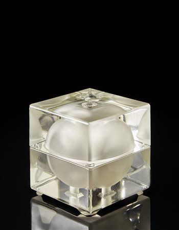 Alessandro Mendini (Milano 1931) Lampada da tavolo "Cubosfera". Vetro stampato e metallo. Produzione Fidenza vetraria, 1968 (cm 16x16x16) (difetti e mancanze) -EN A glass and metal "Cubosfera" table lamp (losses and flaws)