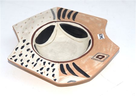 L. Fiume Piatto in terracotta di forma sagomata decorato a motivi stilizzati...