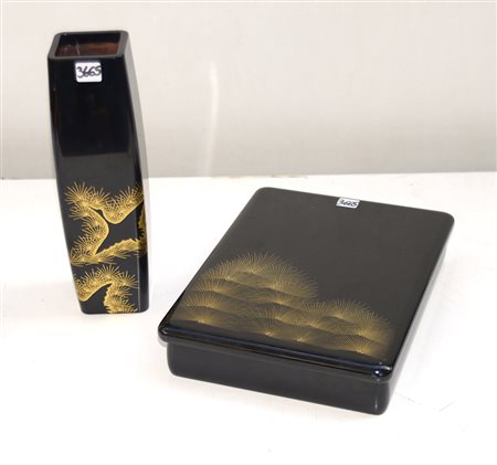Lotto composto da una scatola in lacca nera ed un vaso decorati a motivi stilizzati. Giappone, sec. XX