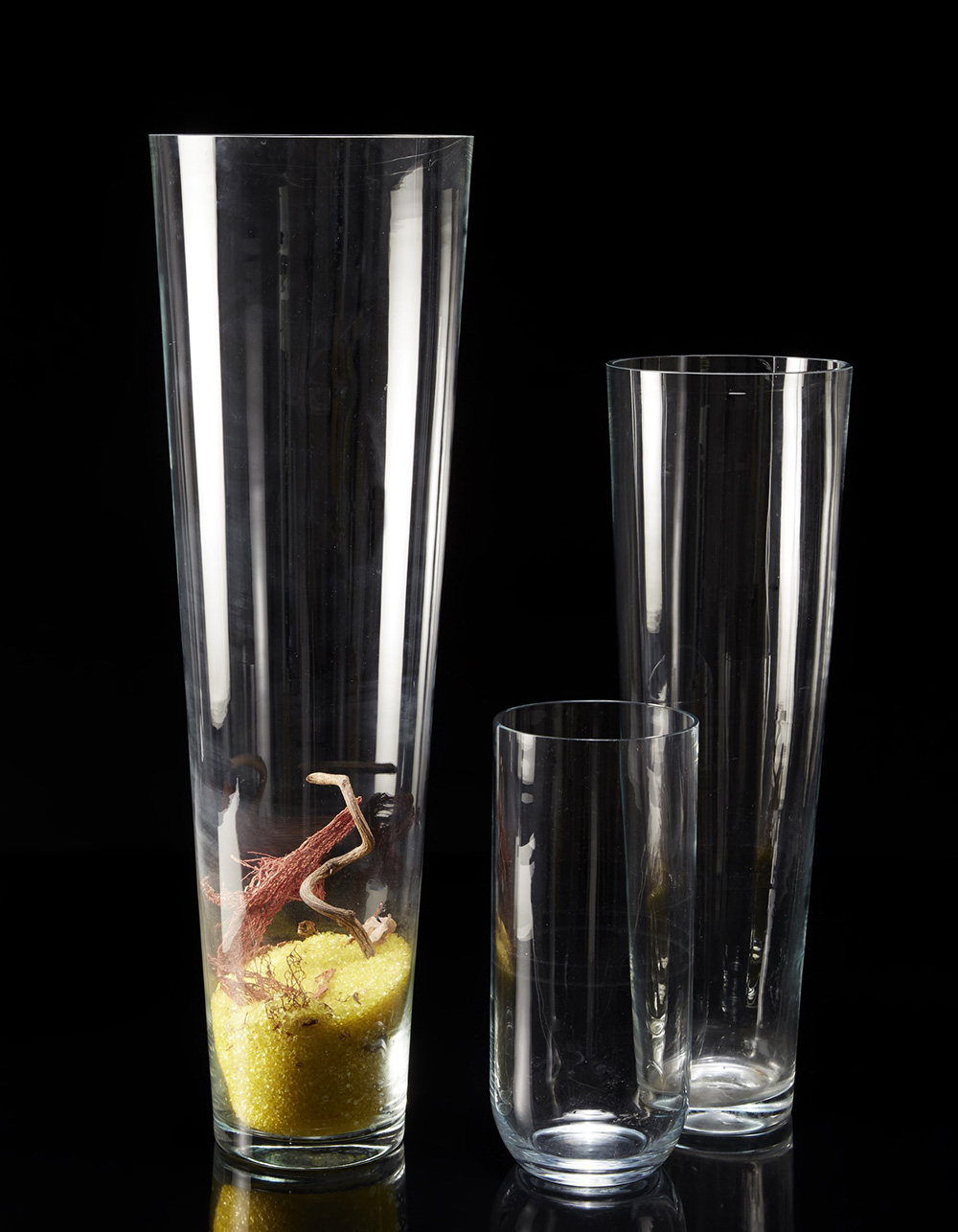 Lotto composto da tre vasi in vetro incolore di manifattura e misure diverse -EN Lot comprising three transparent glass vases, various manufactures
