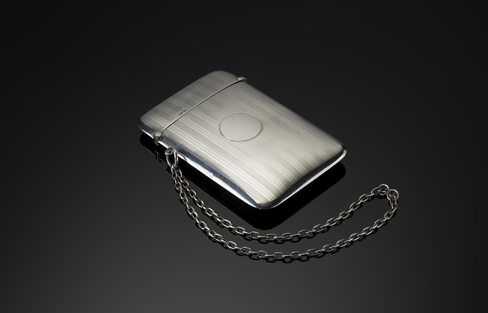 Porta biglietti in argento con corpo inciso a motivi geometrici. Birmingham,...