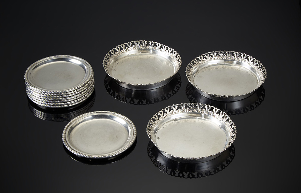 Lot 3714 | Lotto composto da dieci sottobicchieri in argento e uno in metallo argentato...