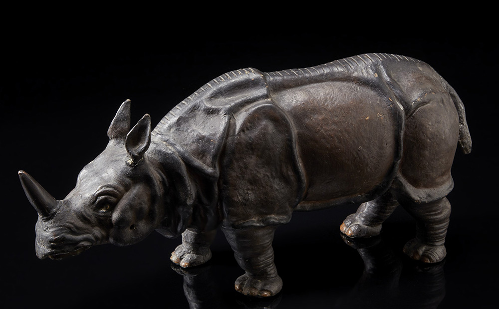 Arte del sec. XX "Rinoceronte" scultura in carta pesta decorata in policromia (h. cm 24) (difetti) -EN Art of the 20th century "Rhinoceros", a papier maché scupture (defects)