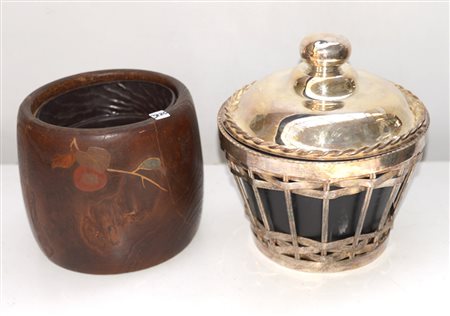 Lotto composto da un vaso portaghiaccio in metallo argentato e unno portafiori giapponese laccato