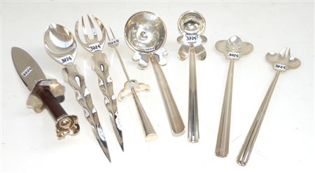 Set di otto posate da servizio in metallo argentato marcate Driade....