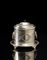 Biscottiera in metallo argentato e decorato a motivi stilizzati e volute....