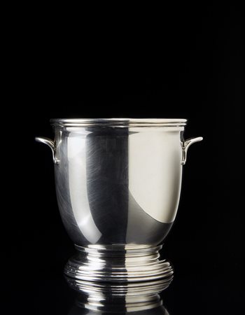 Portaghiaccio biansato in argento a corpo liscio. Titolo 800 (h. cm 14) (gr...